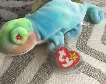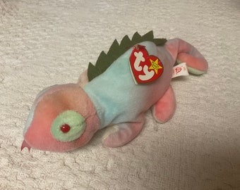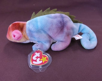 Mint condition stored in airtight container. TY BEANIE BABY - RAINBOW the Chameleon tags w IGGY the Iguana fabric. Rare TY Iggy Beanie baby with misprint TEAMNostalgiaStore 5000000.